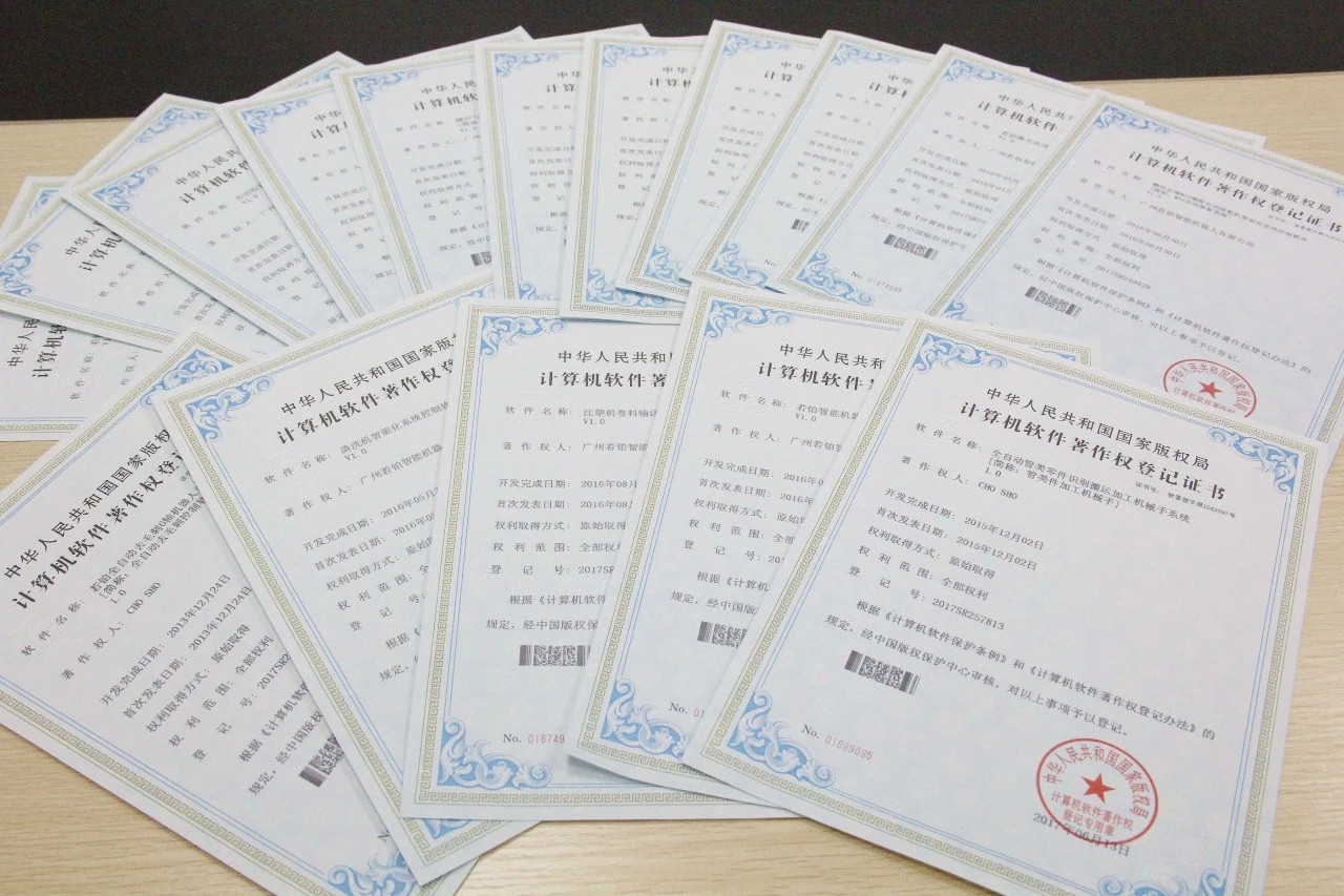 若鉑智能獲得的專利證書及軟件著作權證書(部分)