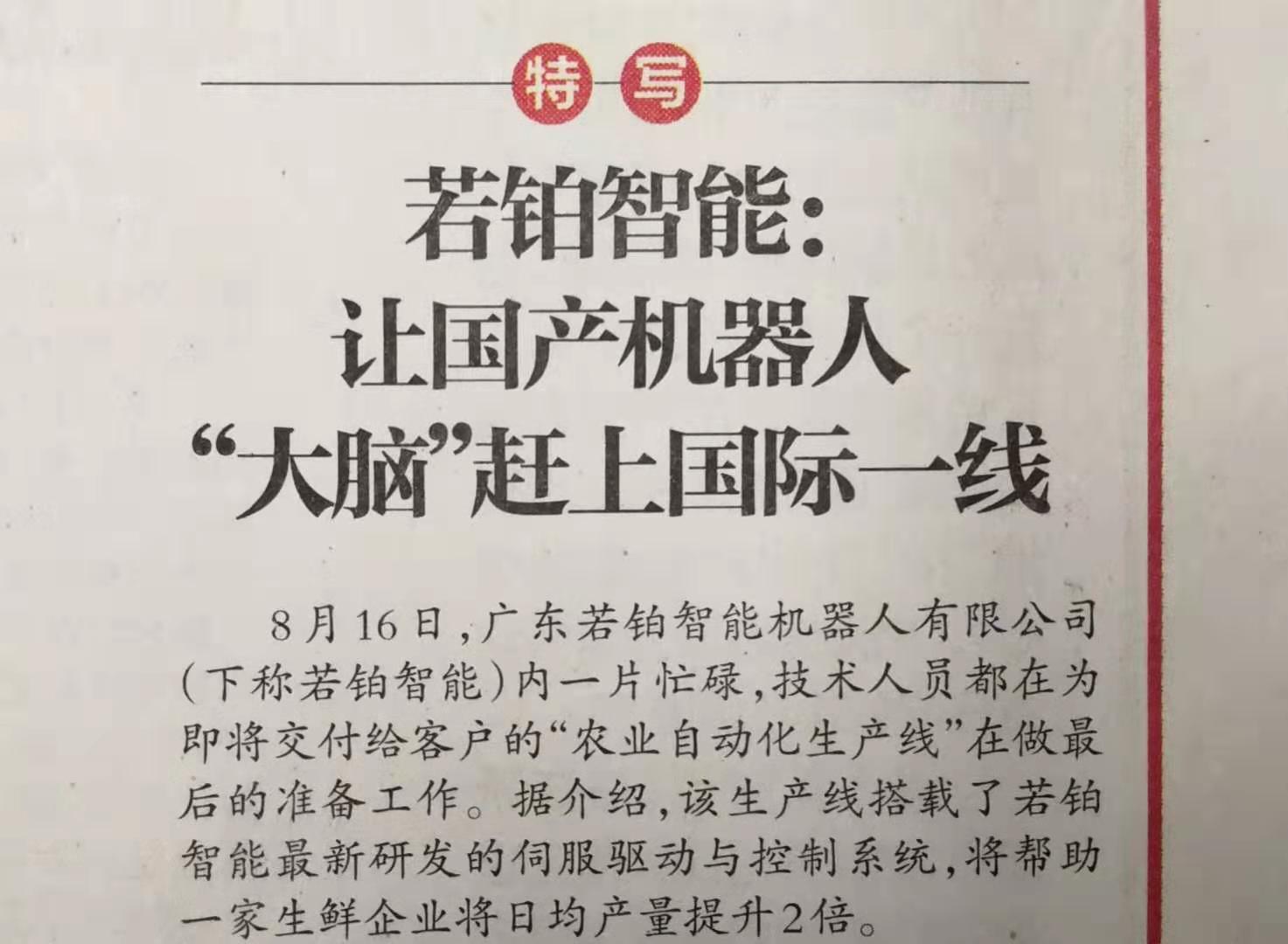 8月16日,廣東若鉑智能機器人有限公司(下稱若鉑智能)內一片忙碌,技術人員都在為即將交付給客戶的“農業自動化生產線”在做最后的準備工作。據介紹,該生產線搭載了若鉑智能最新研發的伺服驅動與控制系統,將幫助一家生鮮企業將日均產量提升2倍。