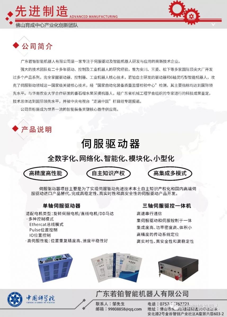 作為一家專注于伺服驅動及智能機器人研發與應用的高新技術企業,廣東若鉑自主研發的驅控一體機,攻克了伺服驅動領域這一國家關鍵核心技術,經“國家自動化裝備質量監督檢驗中心”檢測,其主要指標均達到國際領先水平。
